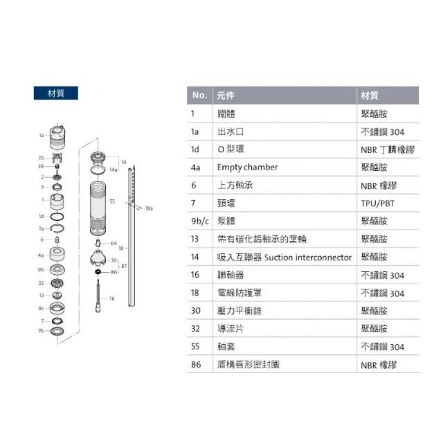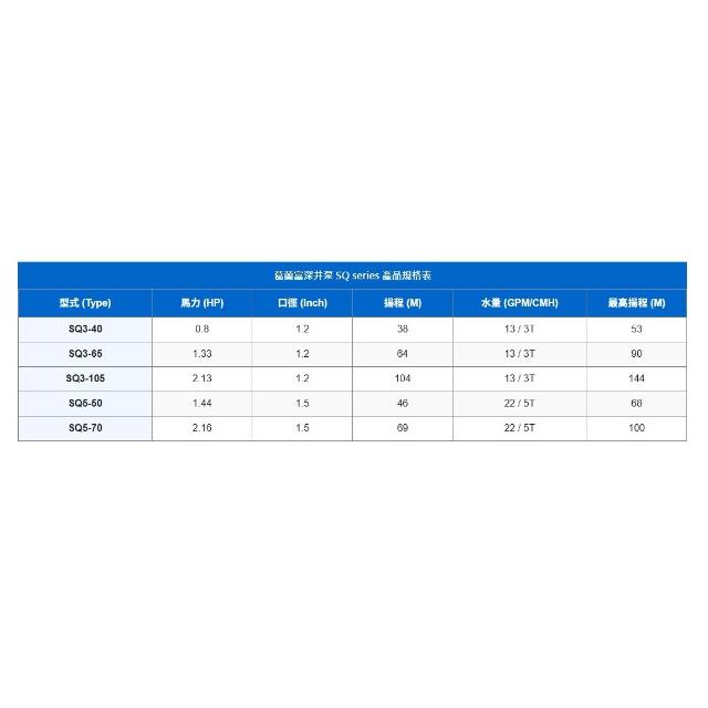 葛蘭富 SQ系列3英吋給水深井泵浦SQ3-40|SQ3-65|SQ5-50|SQ5-70|SQ3-105