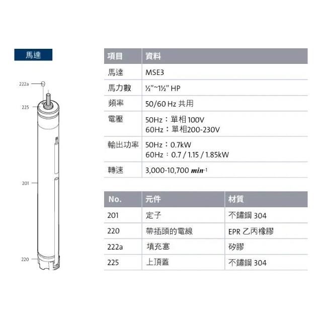 葛蘭富 SQ系列3英吋給水深井泵浦SQ3-40|SQ3-65|SQ5-50|SQ5-70|SQ3-105