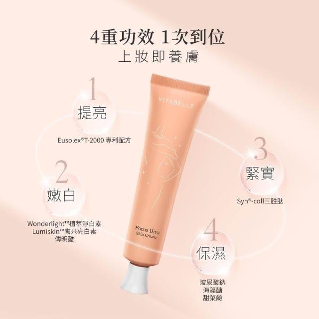 買2送1 心維雅VITABELLE 靚白焦點女神霜 40ml(均勻膚色一擦有感 透亮養膚 舒緩乾燥 身體素顏霜)