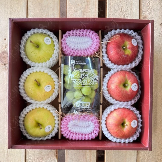 水果狼日本青森縣雙色蘋果+PE麝香葡萄1盒綜合禮盒 青森蘋果 水果禮盒 1.8kg±10%