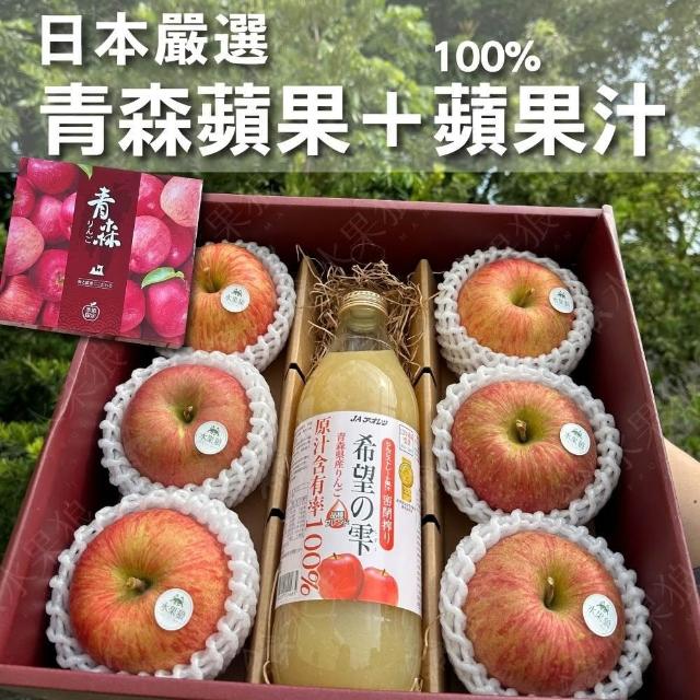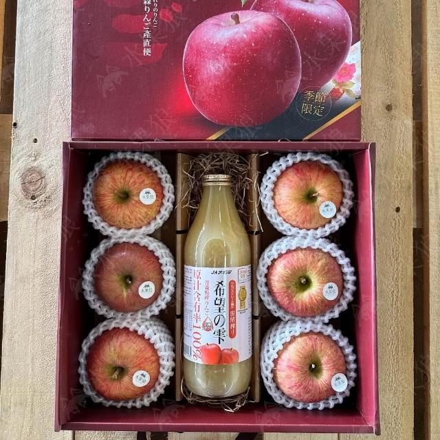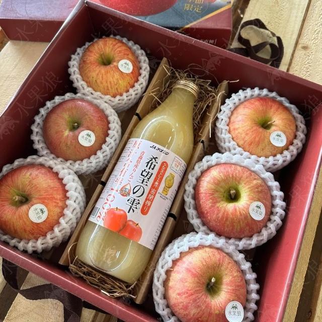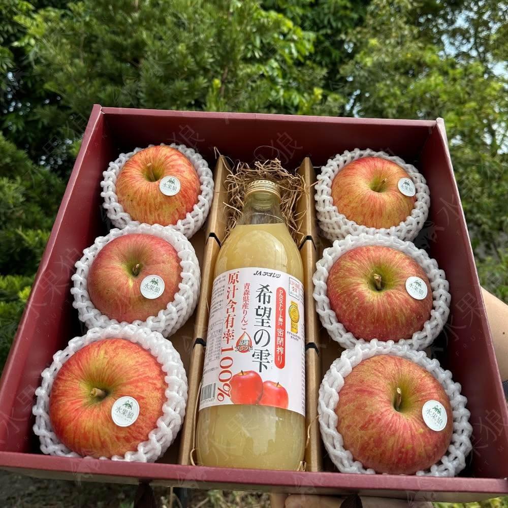 水果狼日本青森縣蘋果6顆+100%蘋果汁綜合禮盒 青森蘋果 水果禮盒 2.9kg±10%