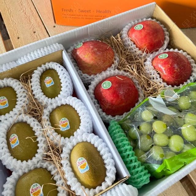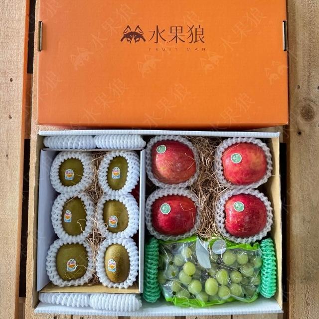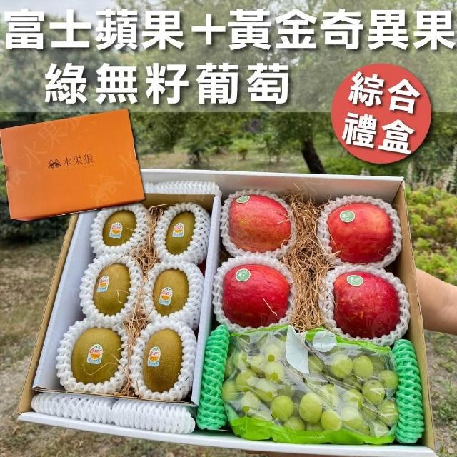 水果狼富士蘋果4顆+Zespri黃金奇異果6顆+綠無籽葡萄1包 / 綜合水果禮盒 3.1kg±10% 水果禮盒