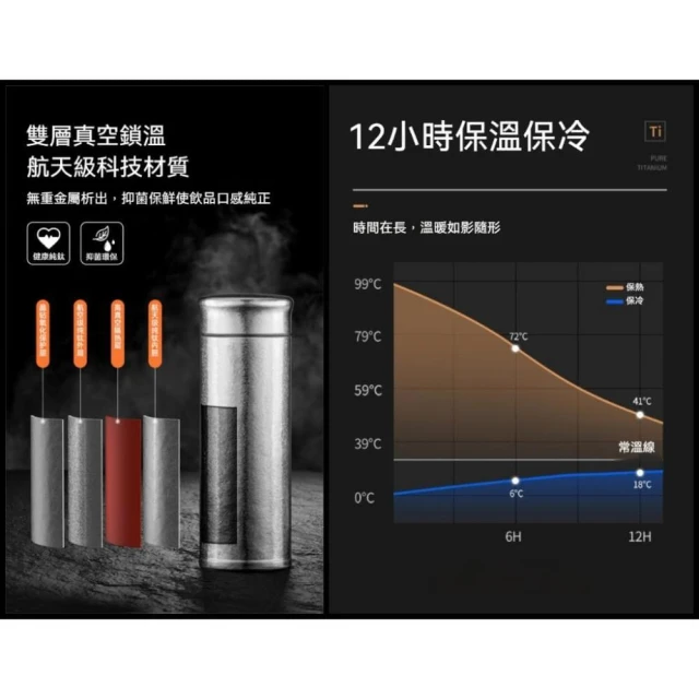 TEMPEST純鈦490ML雙層保溫杯 贈純鈦小杯 200g極輕量 ( 純鈦保溫杯 鈦保溫瓶 鈦合金保溫杯 真空保溫杯 保溫杯 )