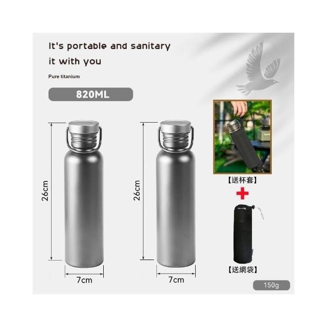 TEMPEST買1送1 輕量化純鈦水瓶 820ML 附贈杯套+網袋 ( 鈦水杯 鈦水壺 露營 運動水壺 )