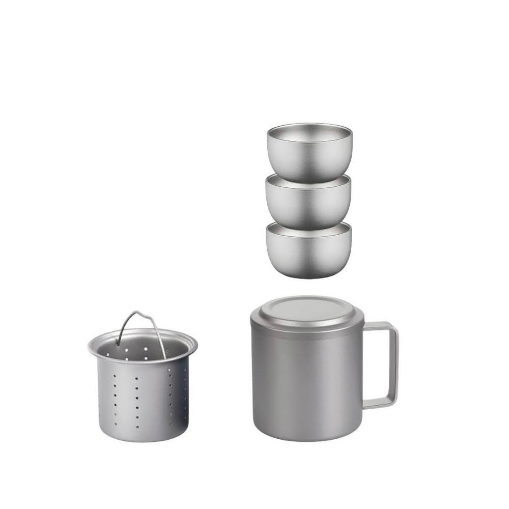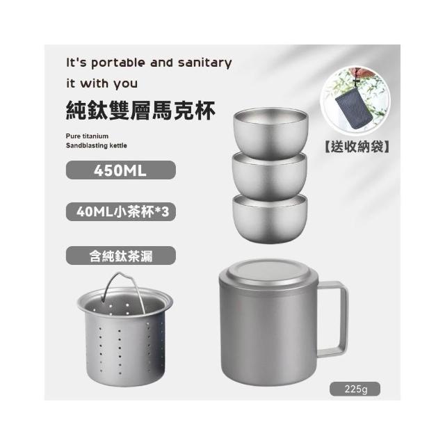 TEMPEST純鈦雙層隔熱馬克杯 450ML 純鈦小茶杯*3套裝優惠組 ( 純鈦馬克杯 鈦杯 鈦金屬杯 登山鈦杯 )