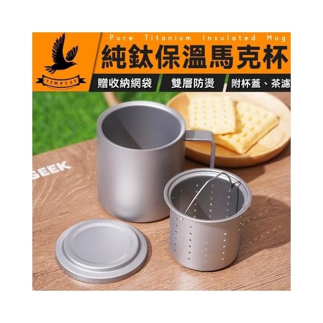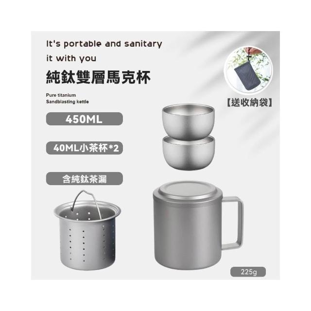 TEMPEST純鈦雙層隔熱馬克杯 450ML 純鈦小茶杯*2套裝優惠組 ( 純鈦馬克杯 鈦杯 鈦金屬杯 登山鈦杯 )