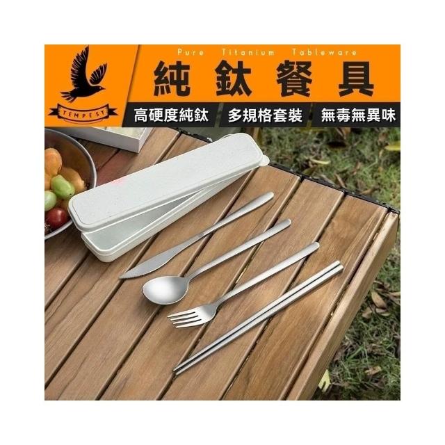 TEMPEST純鈦韓式餐具組 無重金屬物質 套裝送小麥秸稈收納餐盒 ( 純鈦餐具組 鈦金屬餐具組 純鈦筷子湯匙組 健康環保餐具組 )