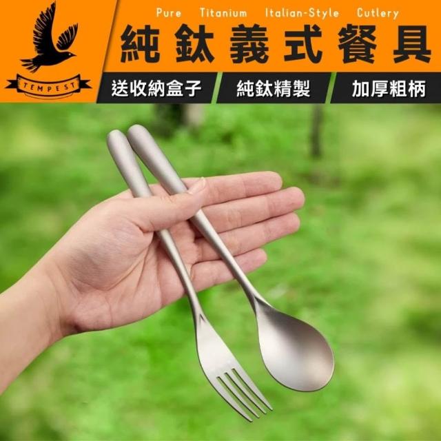 TEMPEST義式純鈦餐具 湯匙 餐叉 23CM長筷 通過食品檢驗 ( 鈦餐具 餐匙 鈦湯勺 叉子 筷子 鈦合金湯勺 純鈦露營餐具 )
