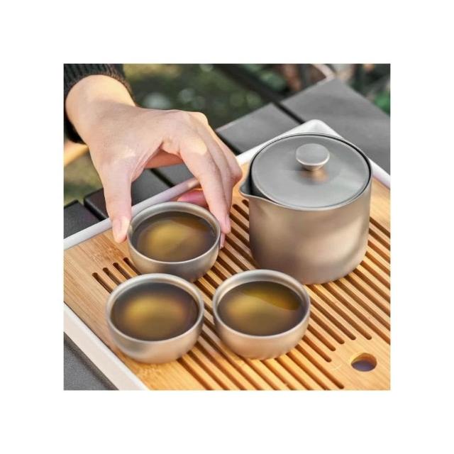 TEMPEST雙層純鈦泡茶器 180ML ( 雙層鈦隔熱 泡茶器 精細濾網雙層茶杯 戶外茶具套裝 鈦茶杯 鈦茶壺 )