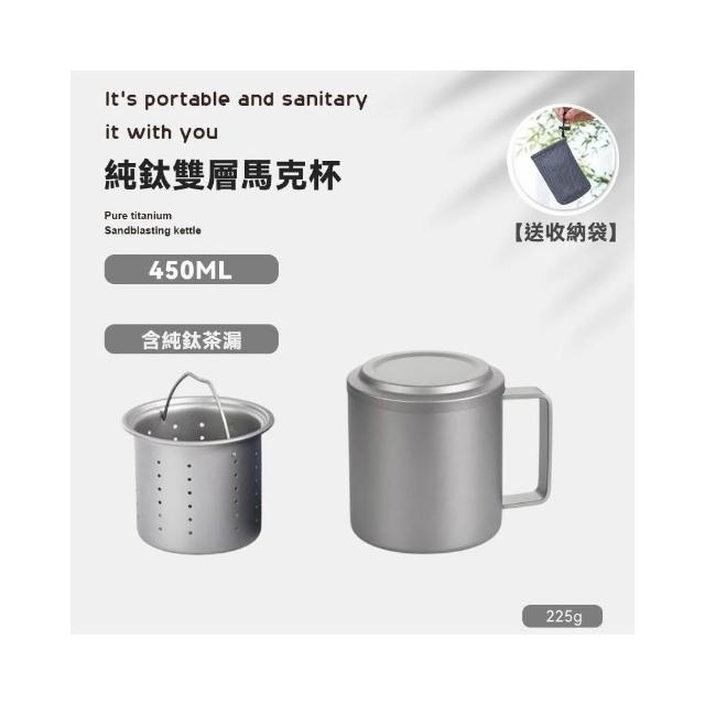 TEMPEST純鈦雙層隔熱馬克杯 450ML ( 純鈦馬克杯 鈦杯 鈦金屬杯 登山鈦杯 露營鈦杯 鈦餐具 純鈦杯 )交換禮物