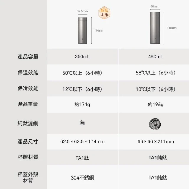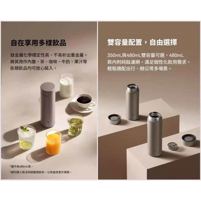小米Ti2純鈦真空杯350ML /480ML雙層保冰 196g ( 小米鈦杯 鈦保溫瓶 純鈦保溫瓶 保溫瓶 ) 平行輸入