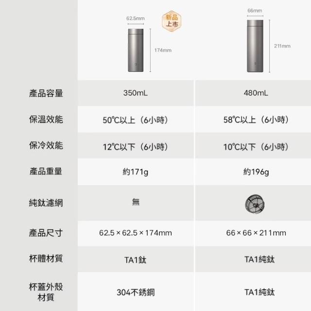 小米Ti2純鈦真空杯350ML /480ML雙層保冰 196g ( 小米鈦杯 鈦保溫瓶 純鈦保溫瓶 保溫瓶 ) 平行輸入