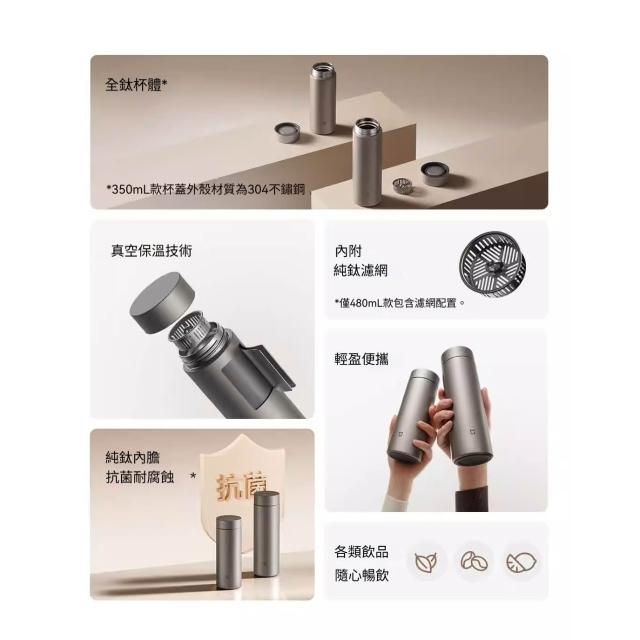 小米Ti2純鈦真空杯350ML /480ML雙層保冰 196g ( 小米鈦杯 鈦保溫瓶 純鈦保溫瓶 保溫瓶 ) 平行輸入