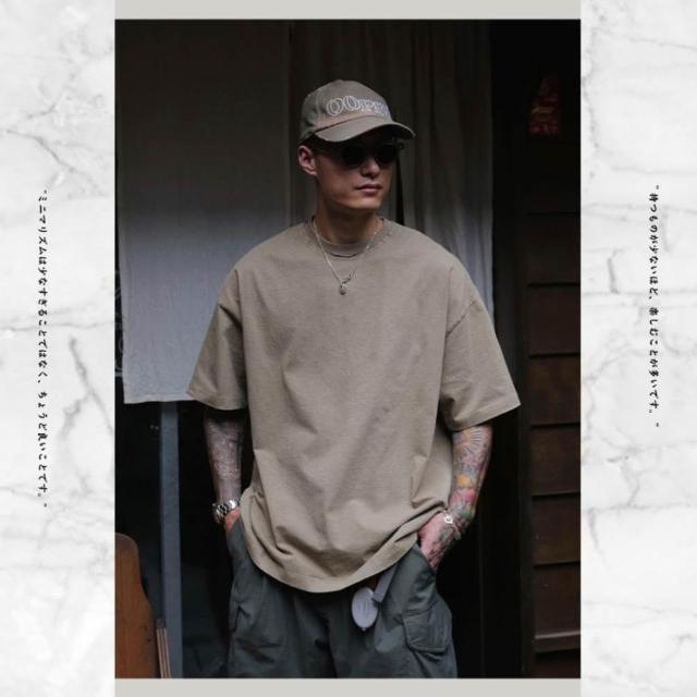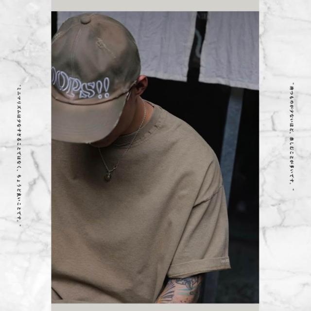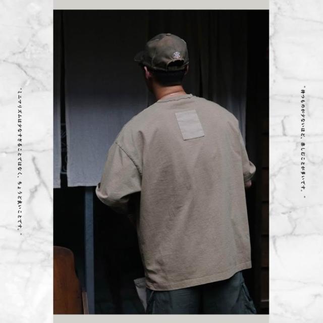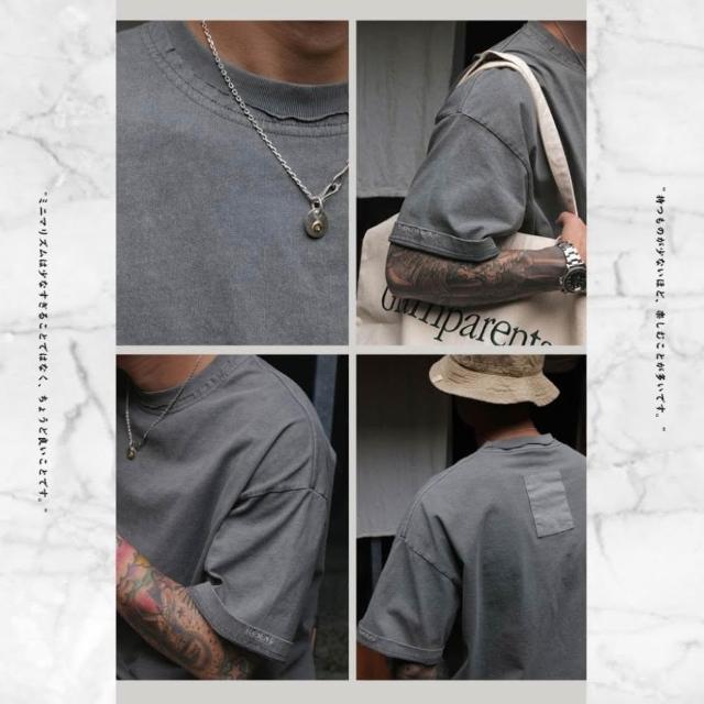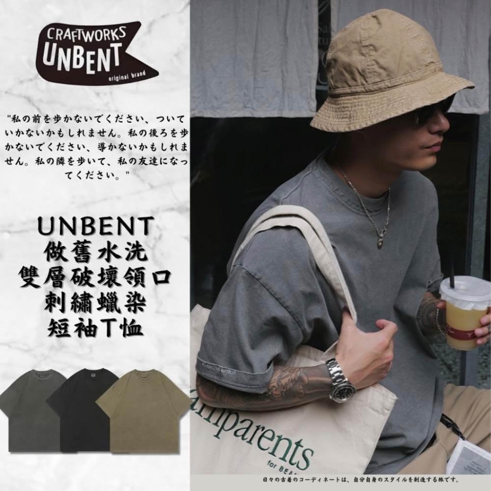 『Pills Select』 UNBENT-24055 做舊 水洗 雙層破壞領口 刺繡 純色 蠟染短袖 寬鬆 休閒T恤