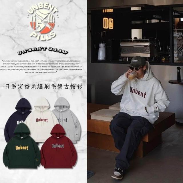 『Pills Select』 現貨 UNBENT-22049 23AW 日系 定番 刺繡logo 刷毛 復古 帽衫