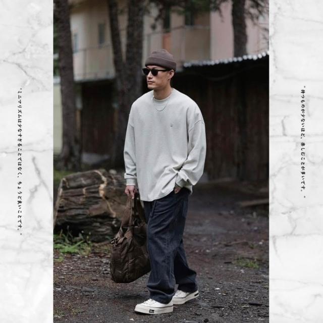 『Pills Select』 UNBENT-24084 日系 復古 刺繡 寬鬆 華夫格 長袖T恤 純色