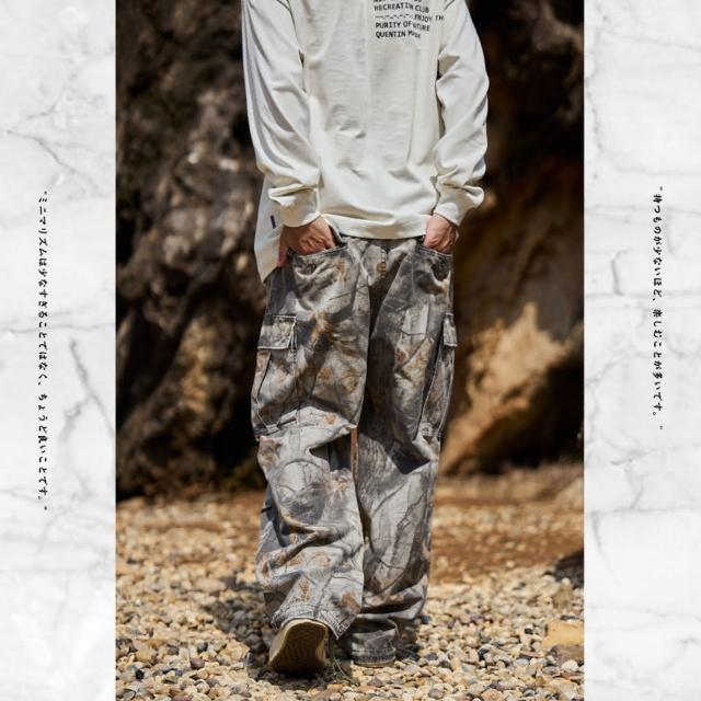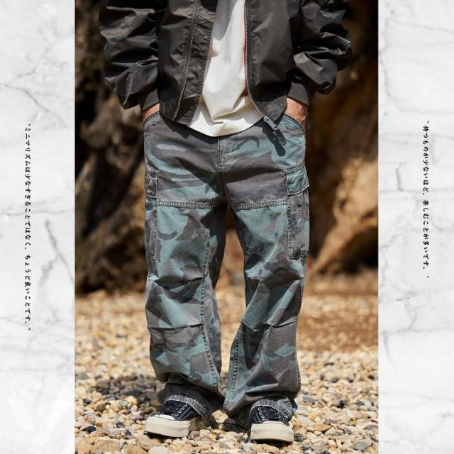 『Pills Select』PS412 潑墨樹枝迷彩褲 復古格紋 水洗做舊 工作褲 工裝褲 直筒褲 傘兵褲 長褲 迷彩褲