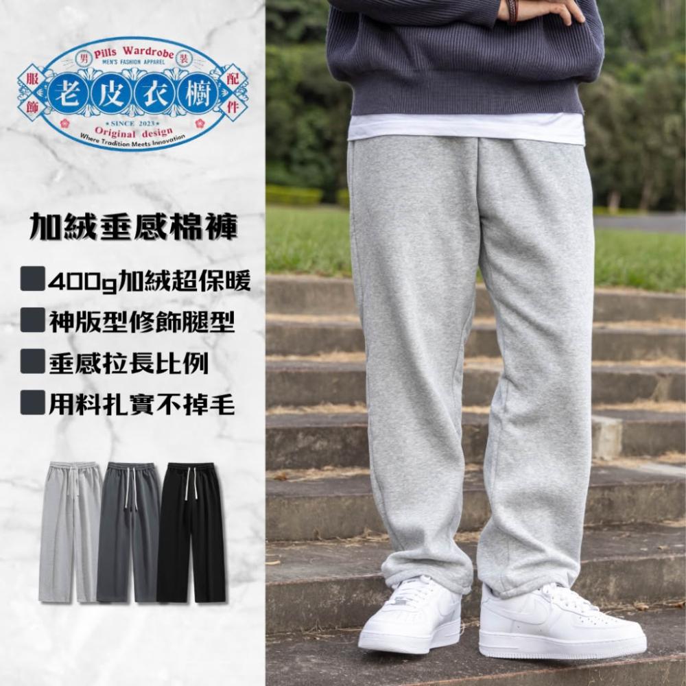 『老皮衣櫥』PS206W 韓國 重磅棉褲 內刷毛垂感棉褲 神版型 棉長褲 保暖 灰色棉褲 棉褲 男生棉褲