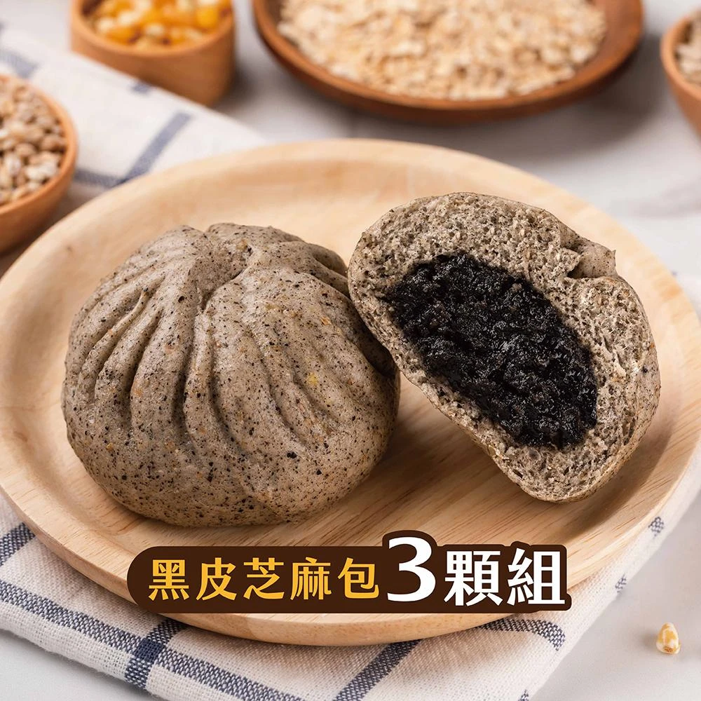 福穀樂黑皮芝麻包3入(奶素 流沙包 芝麻醬 芝麻糊 芝麻餡 黑芝麻粉 低卡減醣 綜合堅果 人氣團購 養生零食 )