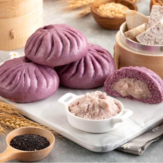 福穀樂爆漿香芋包3入(奶素 紫薯 芋頭包 芋泥包 芋泥餡 非油炸 大甲檳榔心芋頭 雜糧包子 團購冠軍 冷凍出貨)