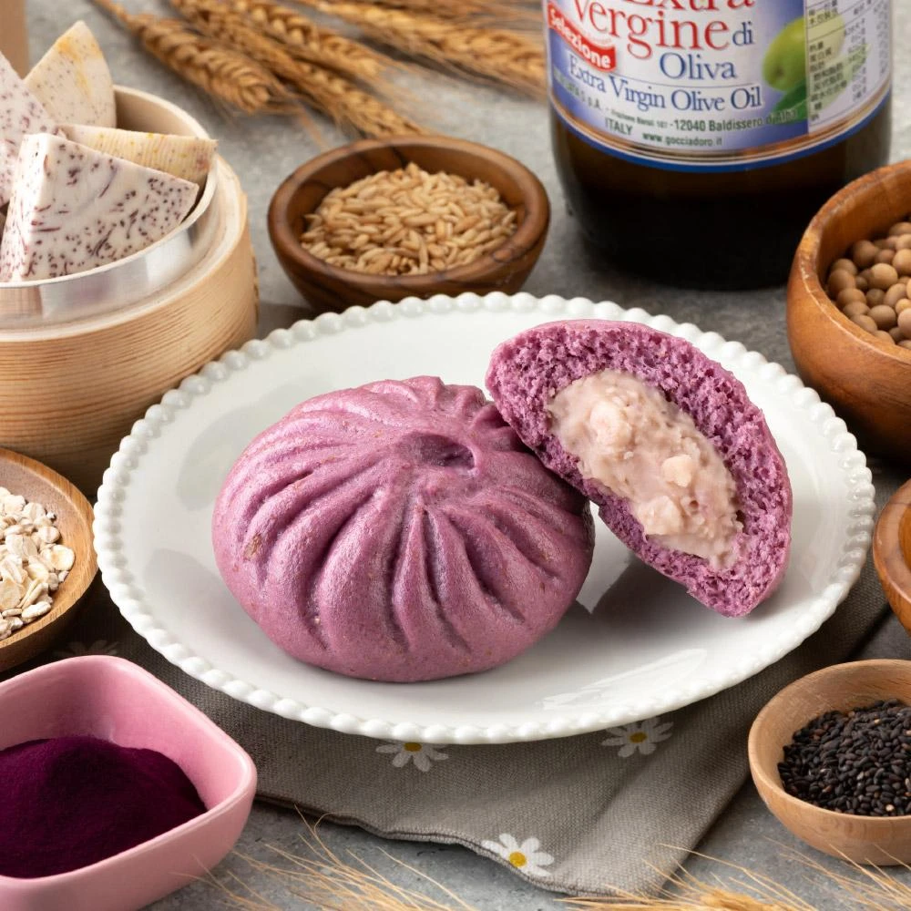福穀樂爆漿香芋包3入(奶素 紫薯 芋頭包 芋泥包 芋泥餡 非油炸 大甲檳榔心芋頭 雜糧包子 團購冠軍 冷凍出貨)