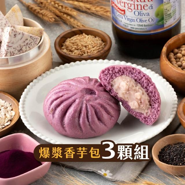 福穀樂爆漿香芋包3入(奶素 紫薯 芋頭包 芋泥包 芋泥餡 非油炸 大甲檳榔心芋頭 雜糧包子 團購冠軍 冷凍出貨)
