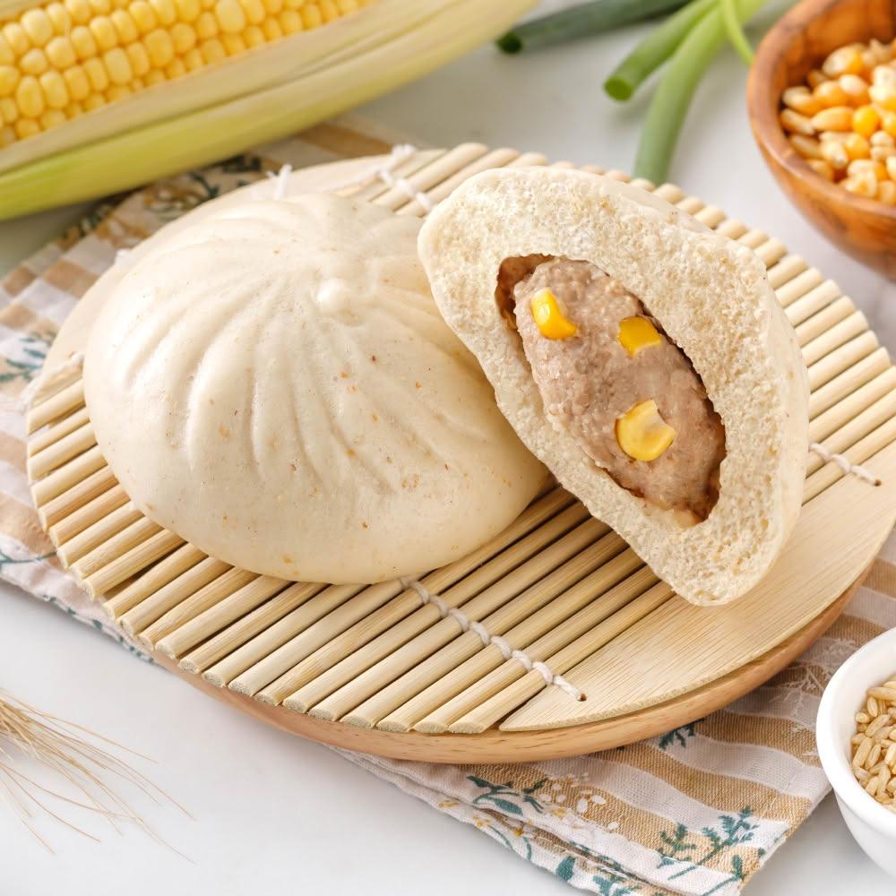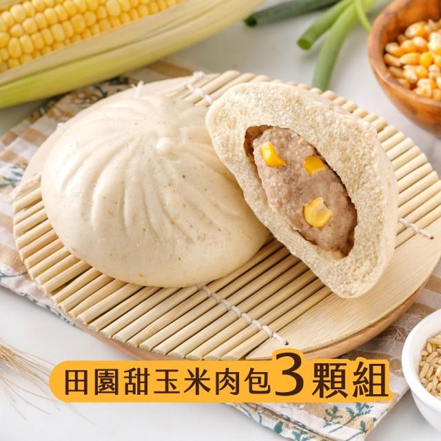 福穀樂田園甜玉米肉包3入(葷食 無味精 無味素 無農藥 玉米粒 黑豆蔭 CAS認證 非基改玉米 黃金比例 單入包裝)