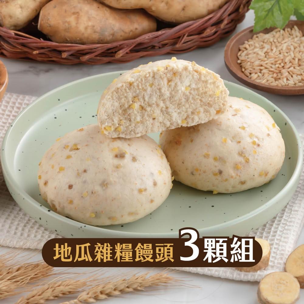 福穀樂地瓜雜糧饅頭3入(奶素 甘藷 甜薯 全穀物 副食品 低GI 超級食物 中式餐點 IQF急速冷凍 超商滿千免運)
