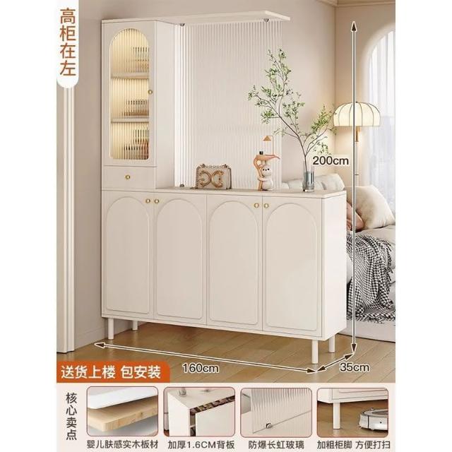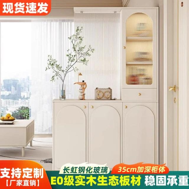 玄關櫃入戶客廳高酒櫃長虹玻璃鞋櫃屏風一體奶油風現代玄關隔斷櫃