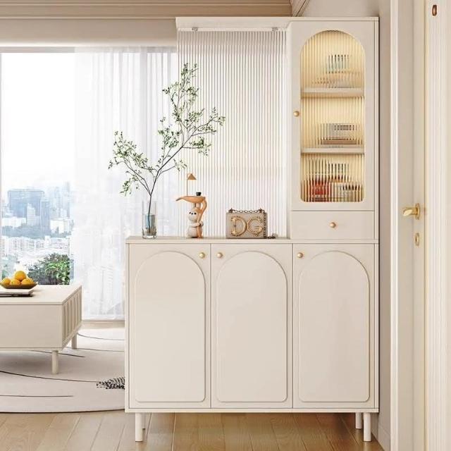 玄關櫃入戶客廳高酒櫃長虹玻璃鞋櫃屏風一體奶油風現代玄關隔斷櫃