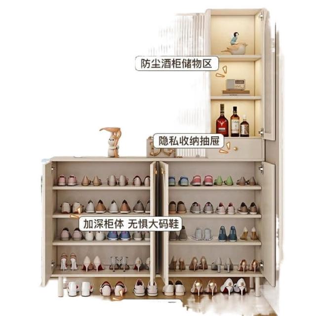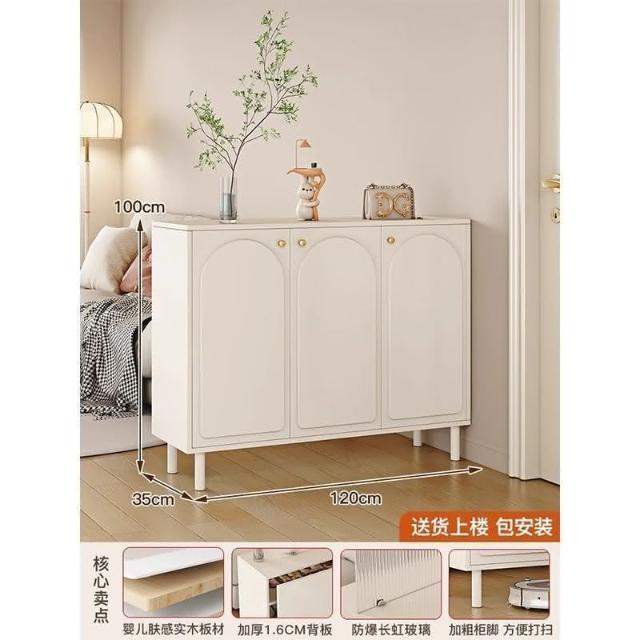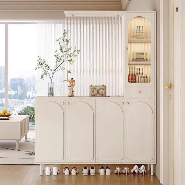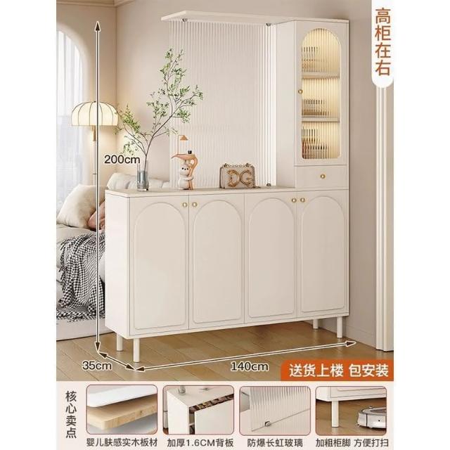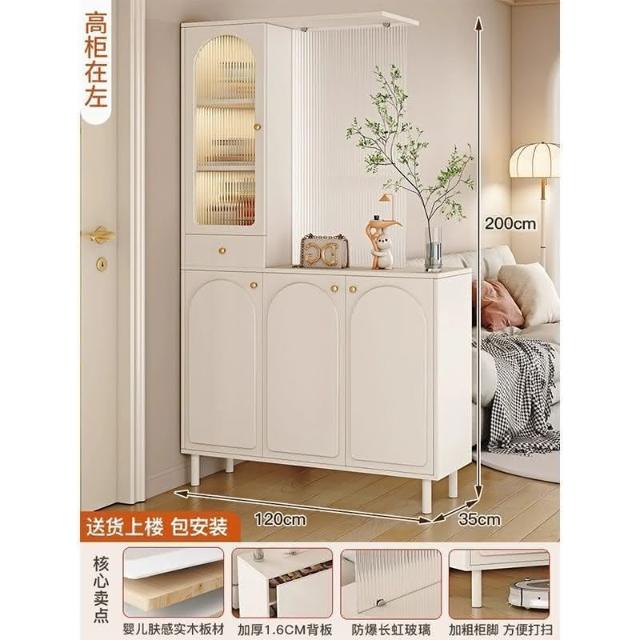 玄關櫃入戶客廳高酒櫃長虹玻璃鞋櫃屏風一體奶油風現代玄關隔斷櫃