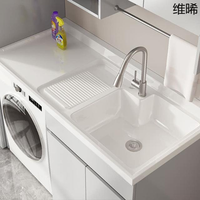 WP2陽臺洗衣櫃一體臺盆洗衣池槽帶搓板滾筒洗衣機櫃伴侶櫃組合浴