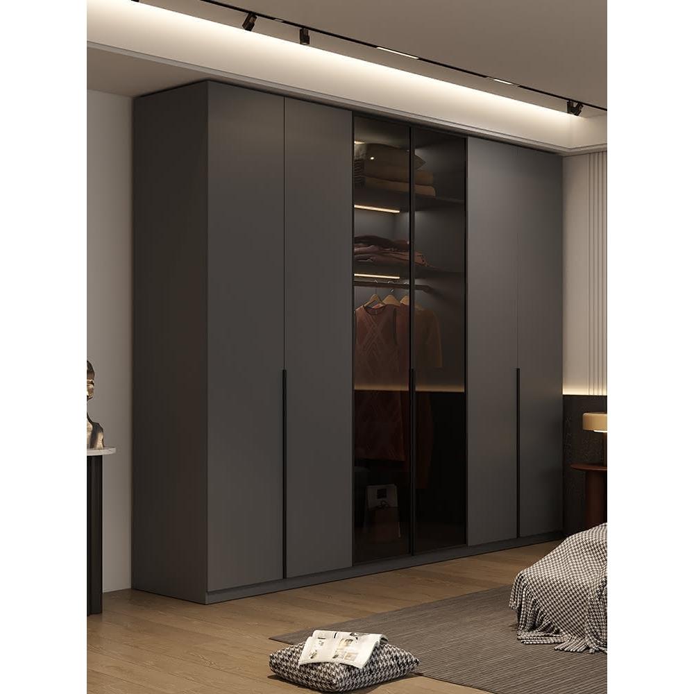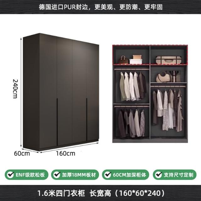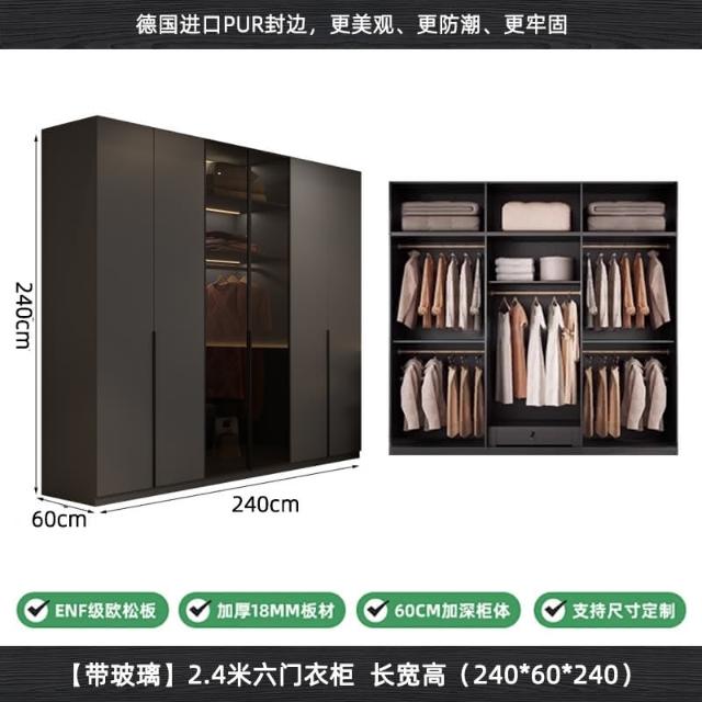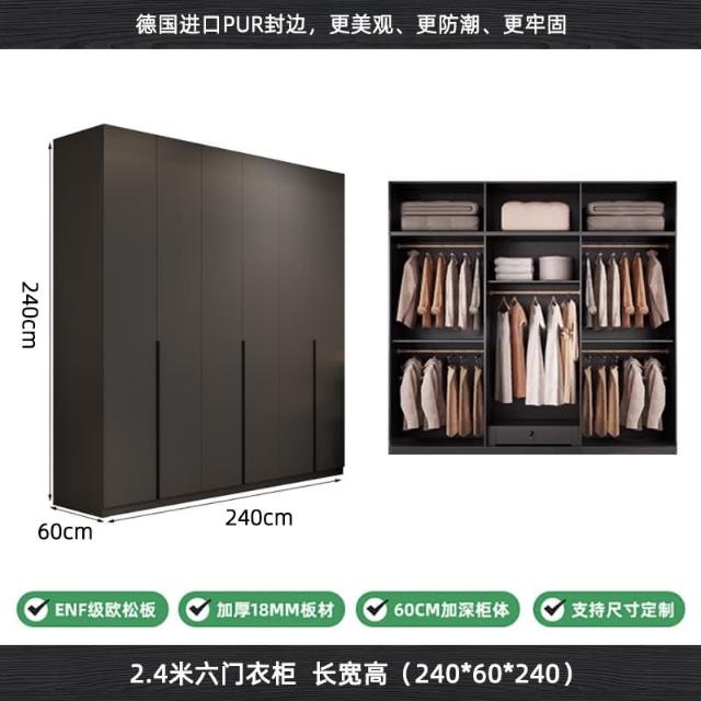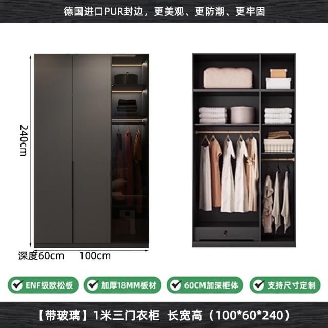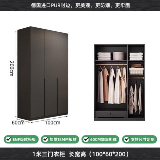 ENF級歐松板實木衣櫃臥室家用一門到頂黑色櫃子現代簡約儲物衣櫥