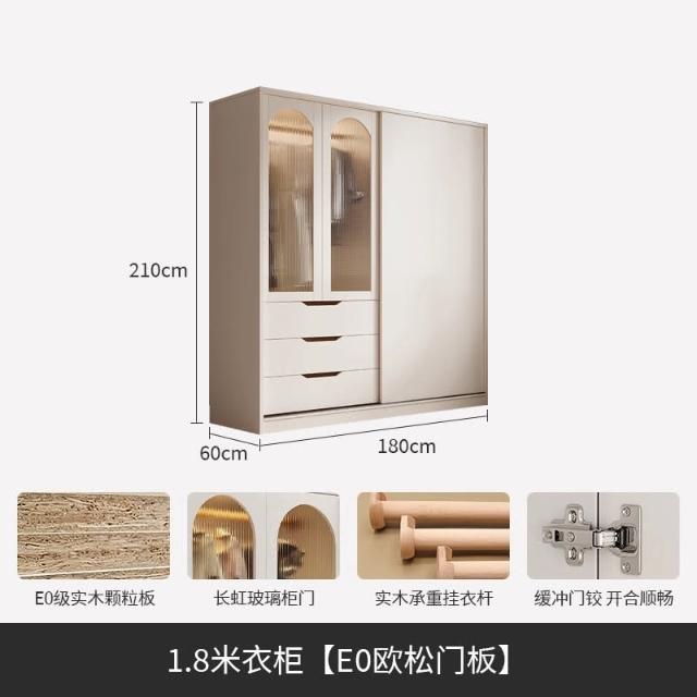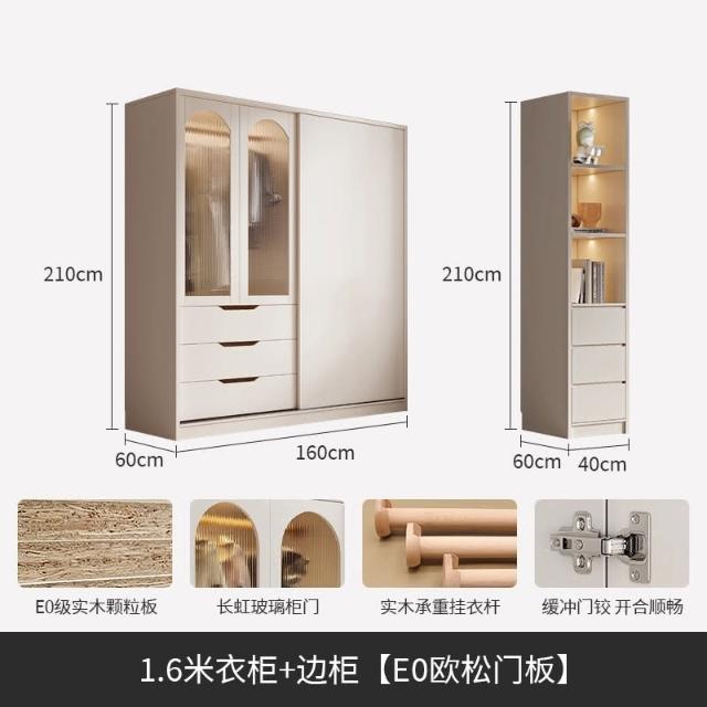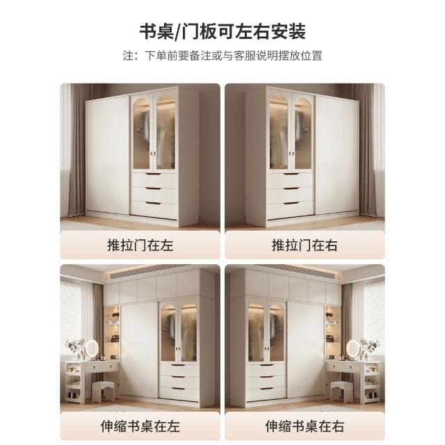 推拉門衣櫃家用臥室法式奶油風梳粧檯書桌一體成品小戶型滑門衣櫥