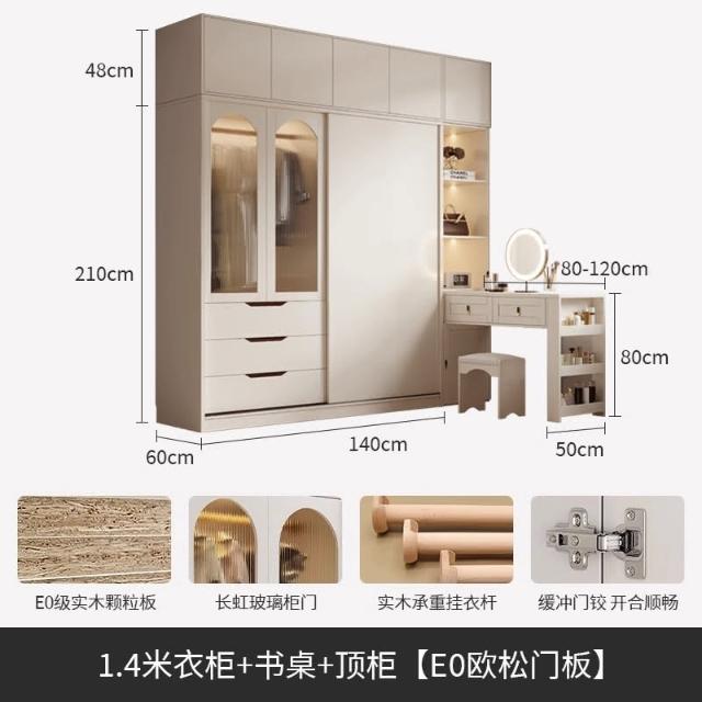 推拉門衣櫃家用臥室法式奶油風梳粧檯書桌一體成品小戶型滑門衣櫥