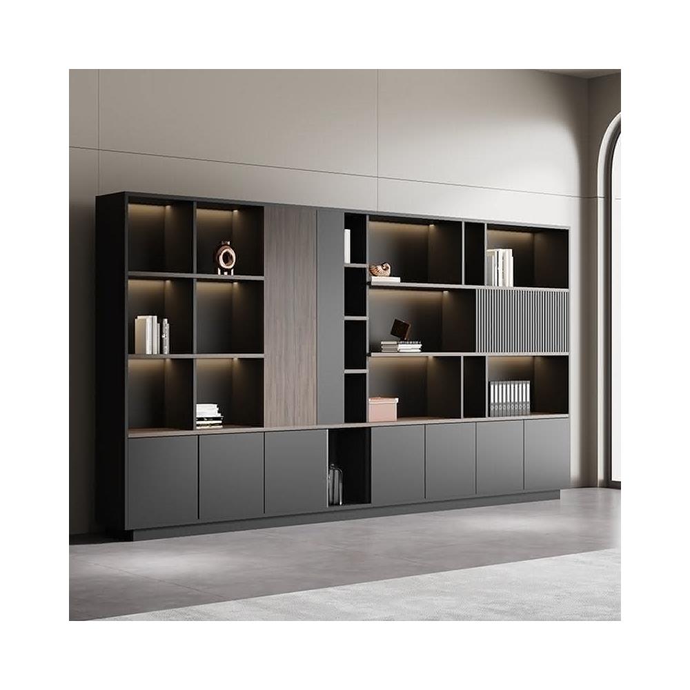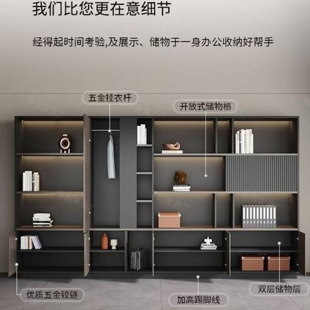 辦公室書櫃老闆背景櫃檔櫃子木質資料櫃收納櫃簡約現代風落地櫃