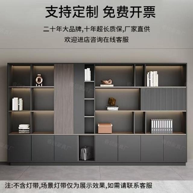 辦公室書櫃老闆背景櫃檔櫃子木質資料櫃收納櫃簡約現代風落地櫃