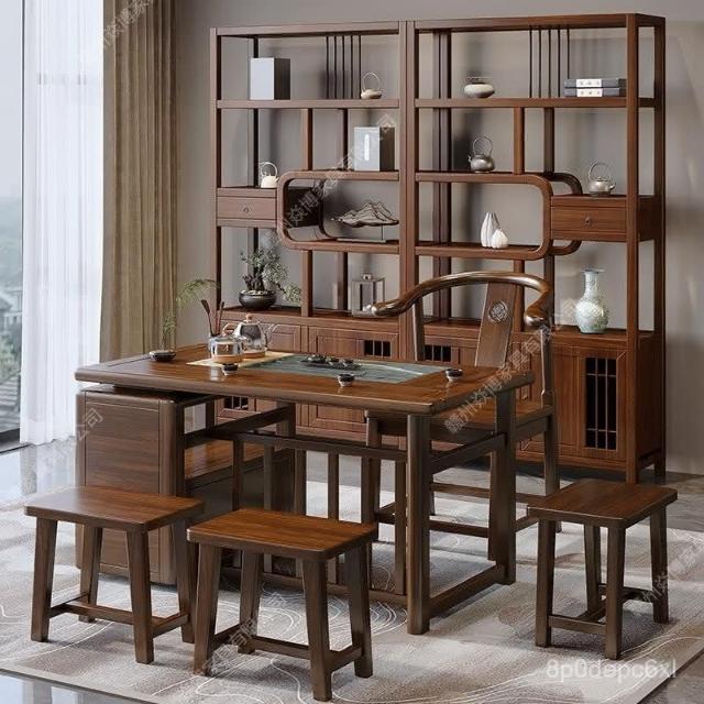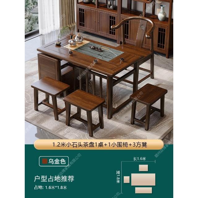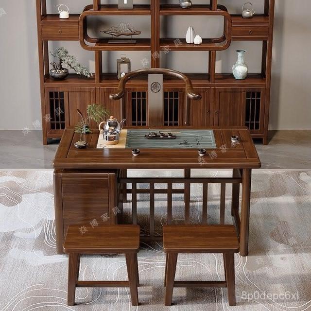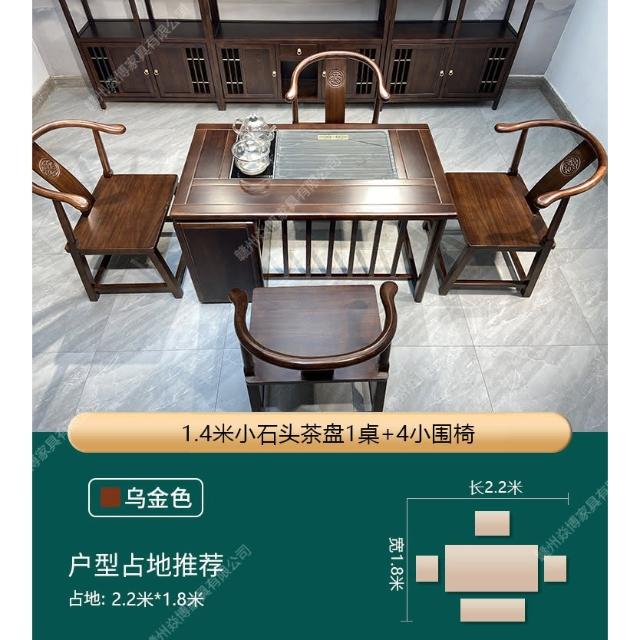全臺免運 可開統編 新中式烏金木茶桌全套實木泡茶桌椅組閤辦公室陽臺家用小戶型茶臺