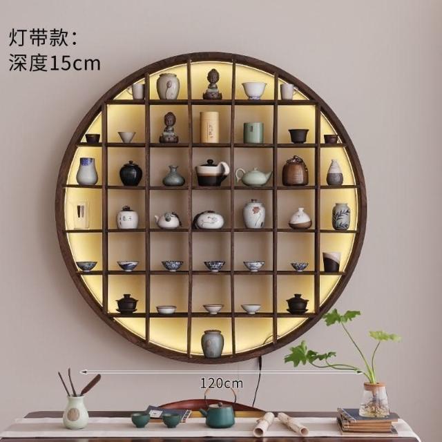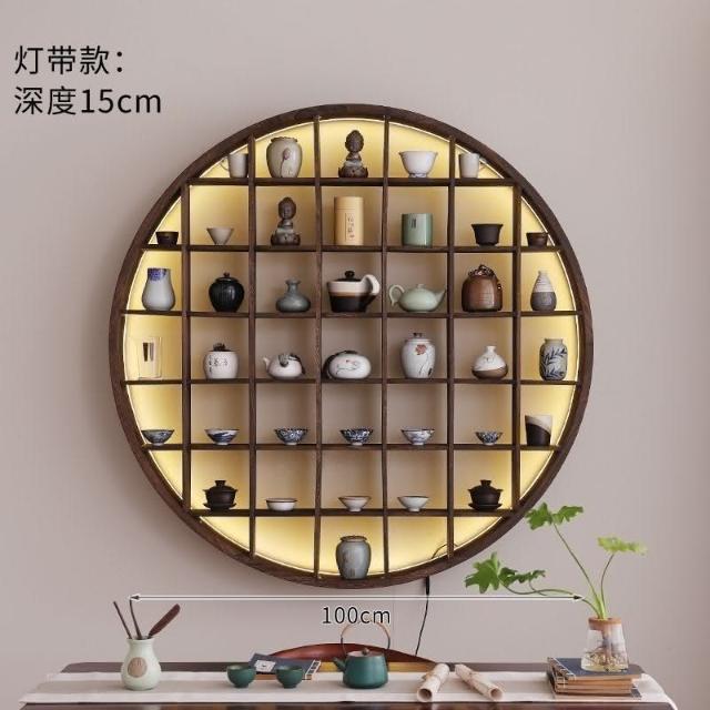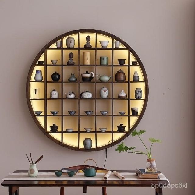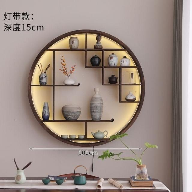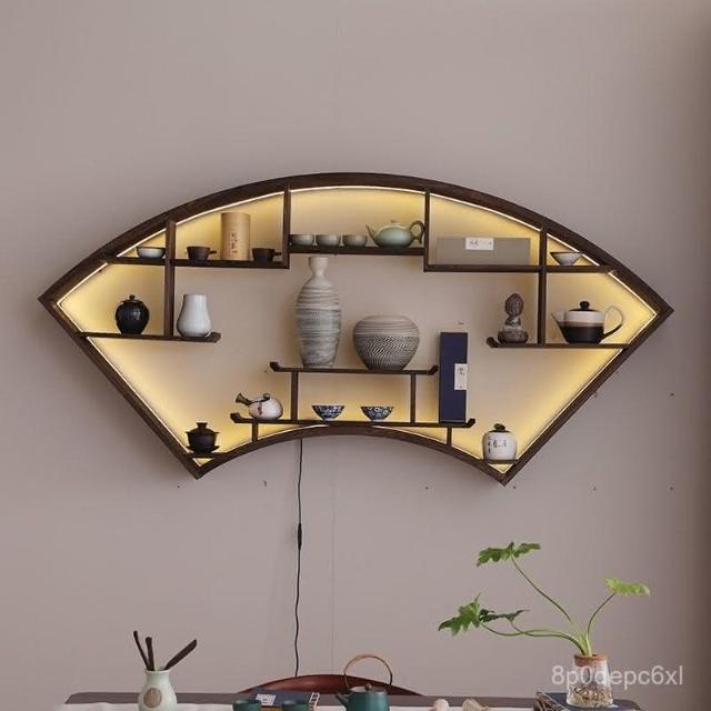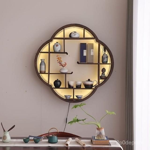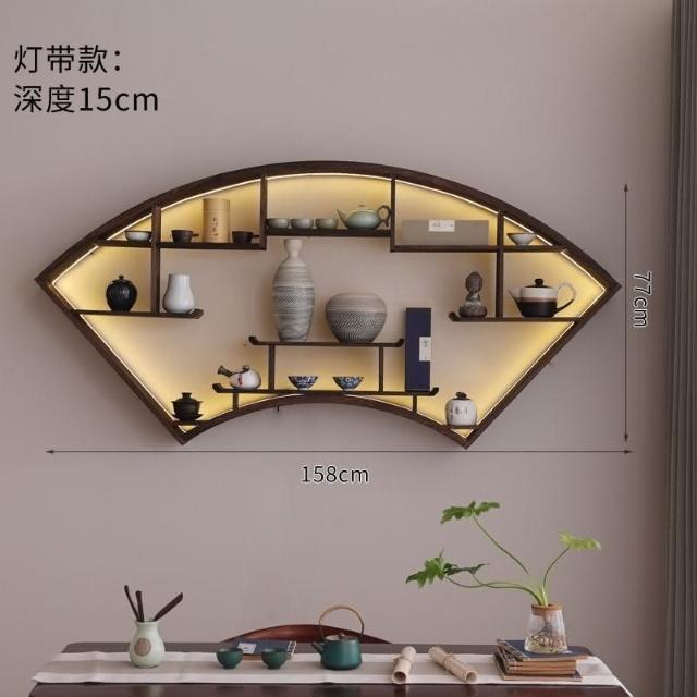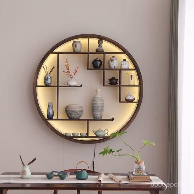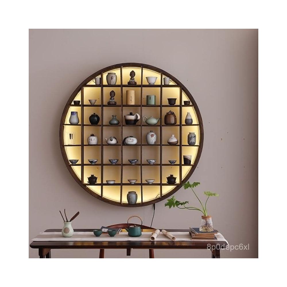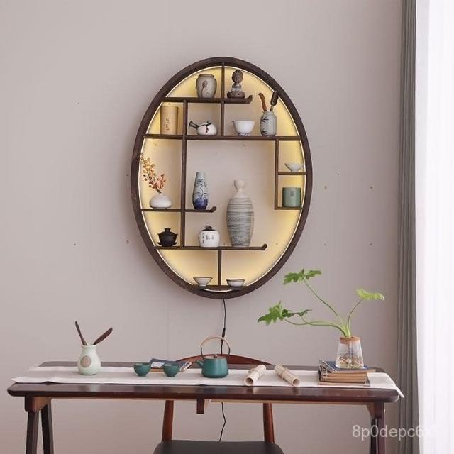 爆款 免運 仿古小型博古架墻上置物架燈帶款中式家居收納墻上多寶閣零碎收納