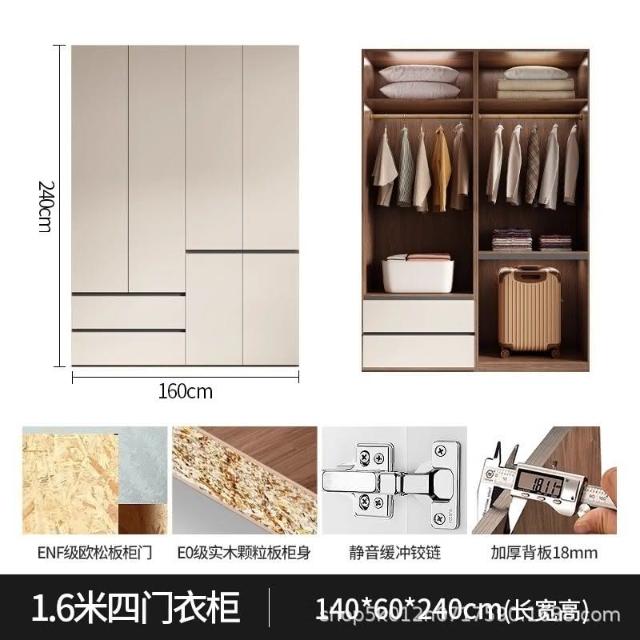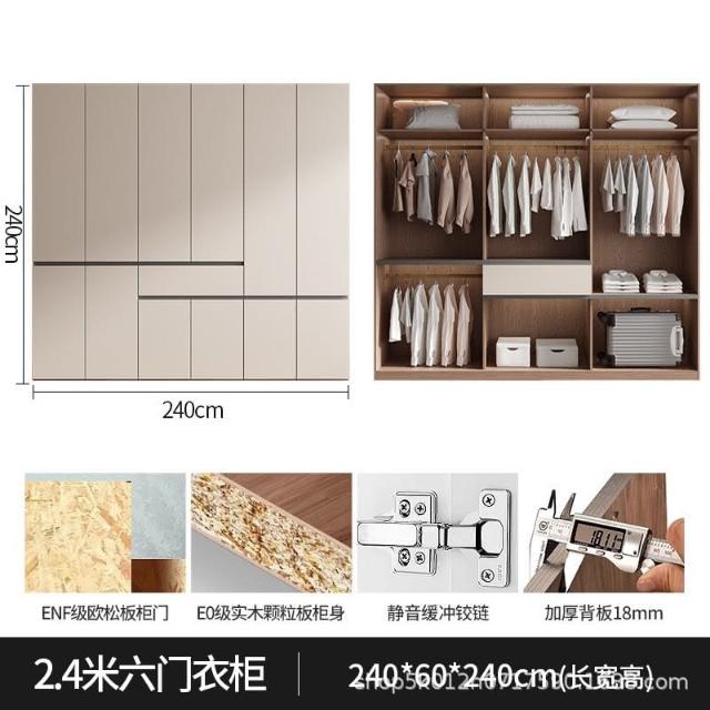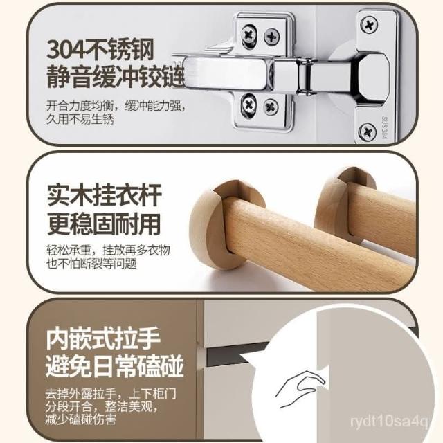 ✨免運 衣櫃家用簡約現代法式奶油風免拉手主臥室實木分段式儲物大衣櫃