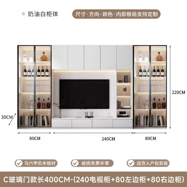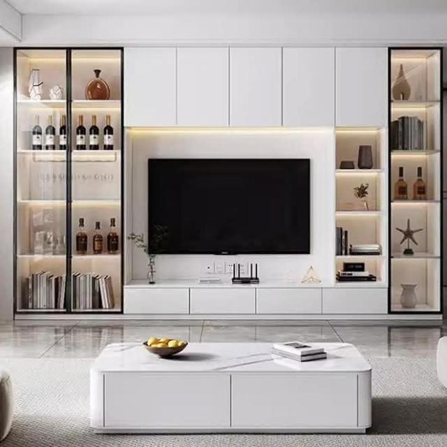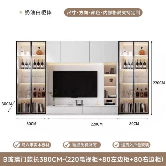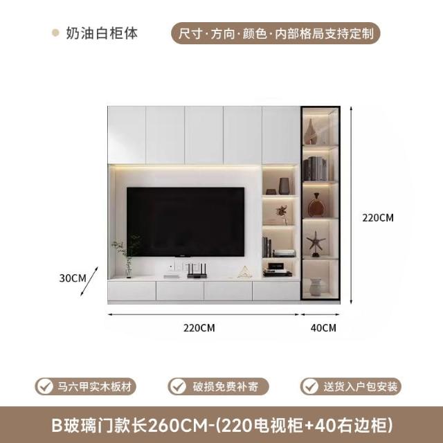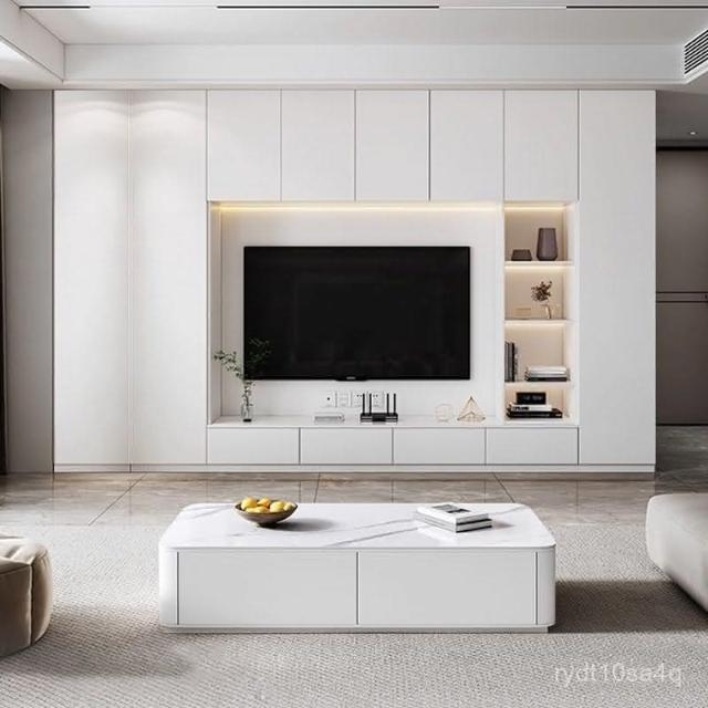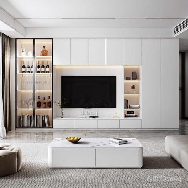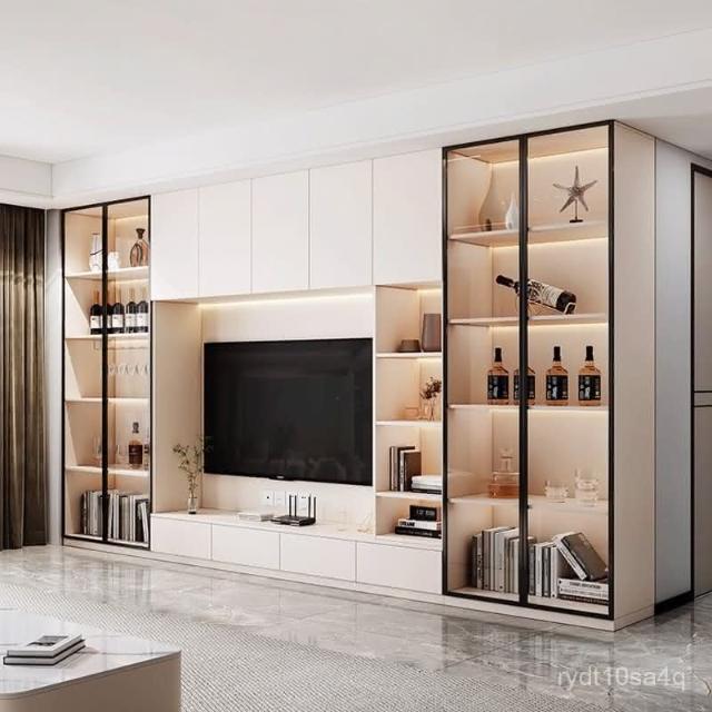✨免運 電視櫃背景墻一體客廳書櫃酒櫃靠墻儲物櫃子家用實木電視機櫃