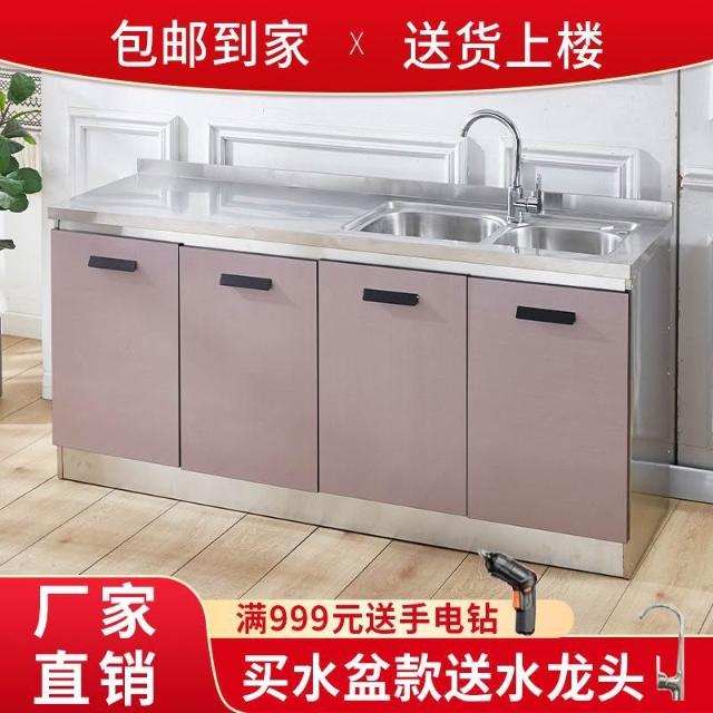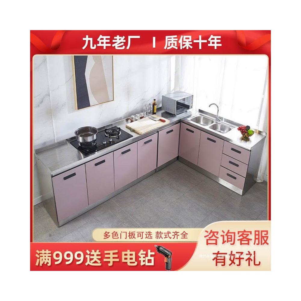 家用廚房櫥櫃組合櫃不銹鋼廚房櫃灶台一整套清倉經濟型一體多功能