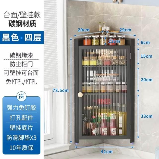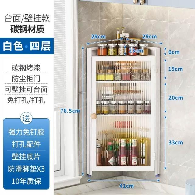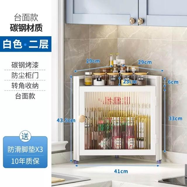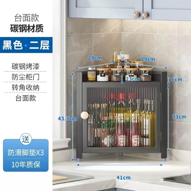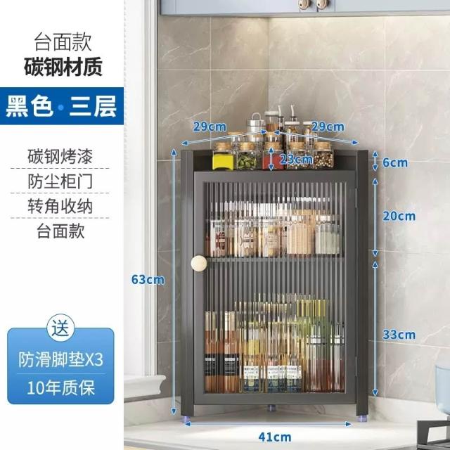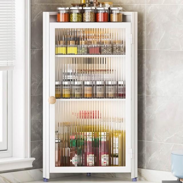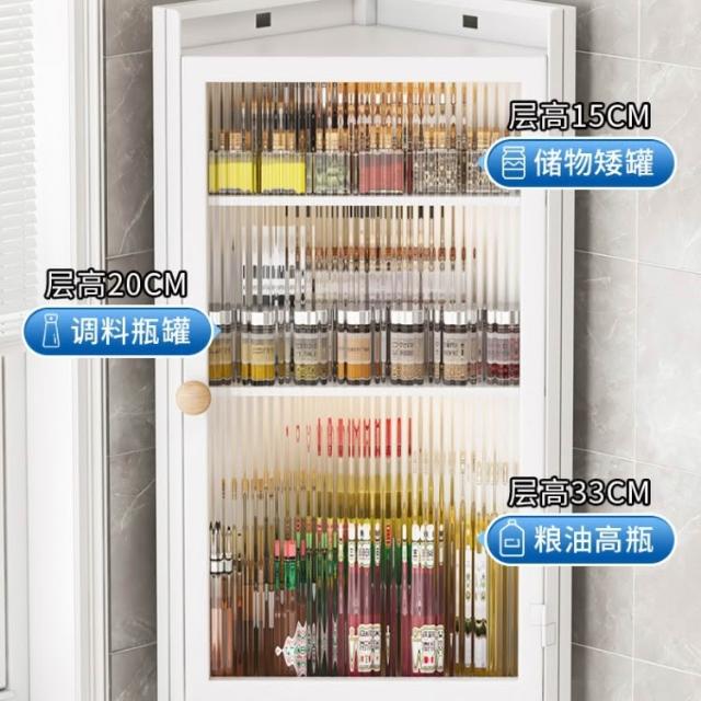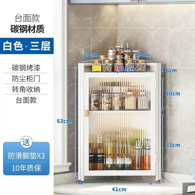 廚房置物架角落三角櫃調料櫃檯面帶櫃門防塵轉角調料架多層收納櫃