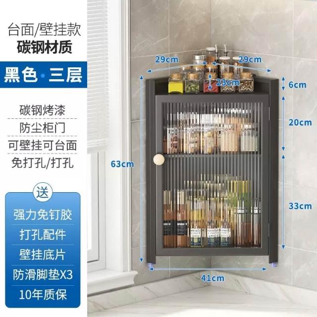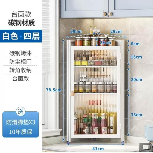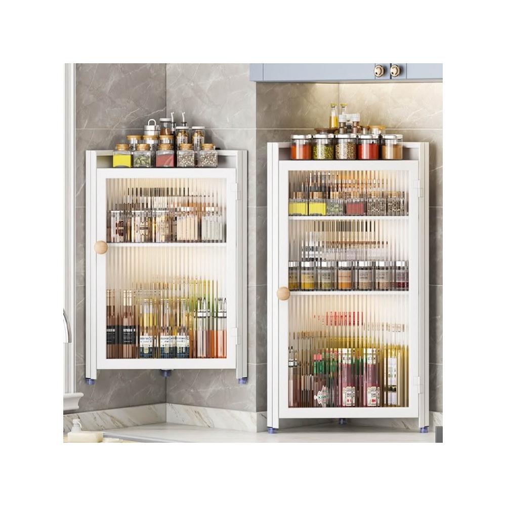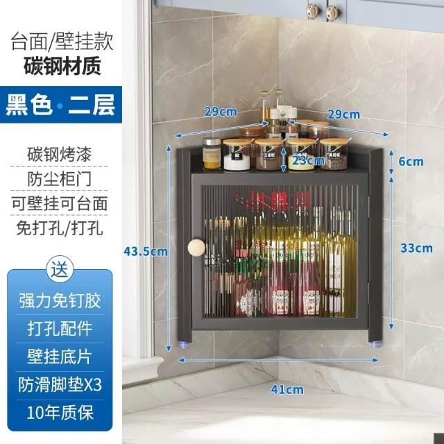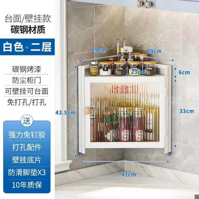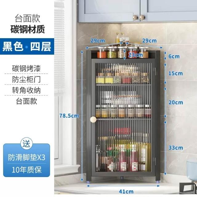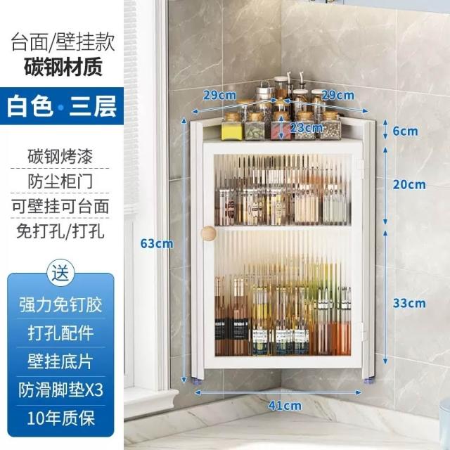 廚房置物架角落三角櫃調料櫃檯面帶櫃門防塵轉角調料架多層收納櫃