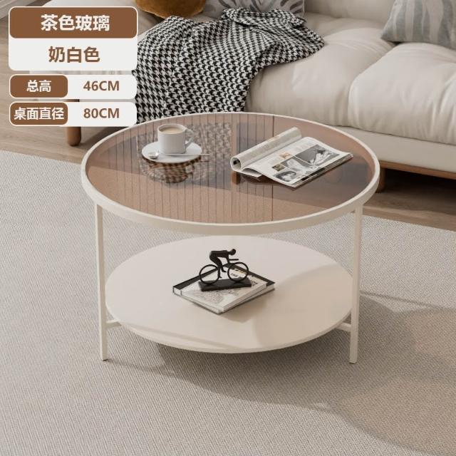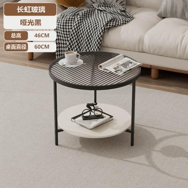 奶油風長虹玻璃茶几家用小戶型雙層置物邊幾北歐圓形極簡迷你桌子