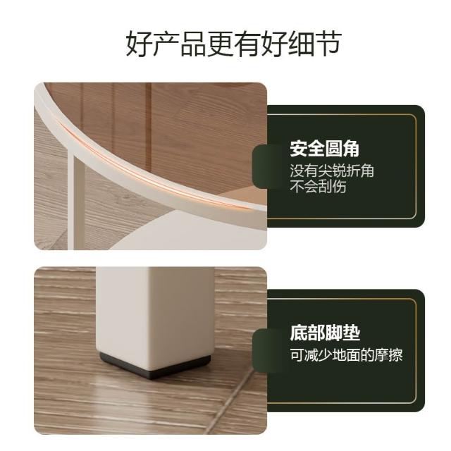 奶油風長虹玻璃茶几家用小戶型雙層置物邊幾北歐圓形極簡迷你桌子