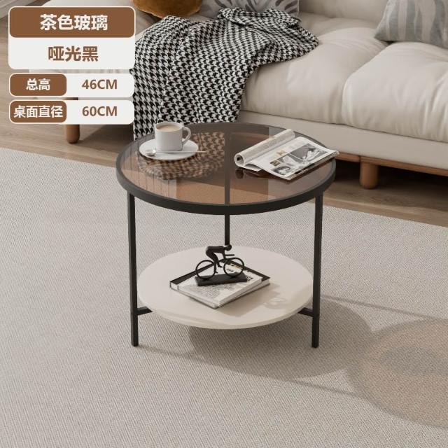 奶油風長虹玻璃茶几家用小戶型雙層置物邊幾北歐圓形極簡迷你桌子