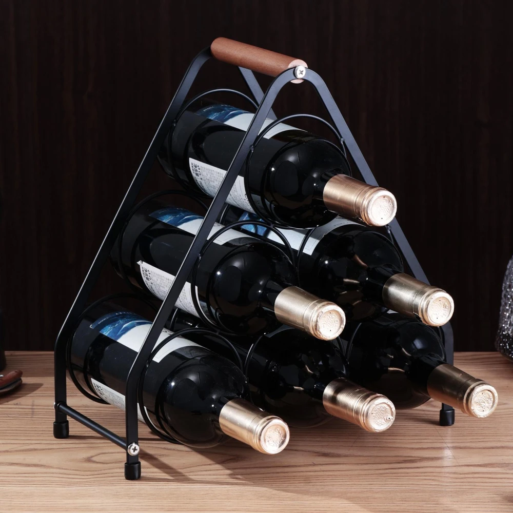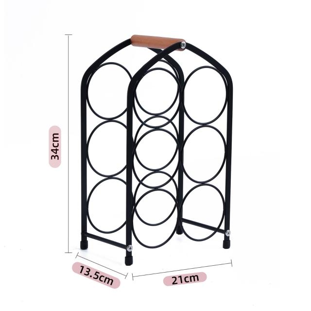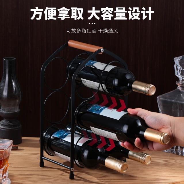 跨境六瓶紅酒架歐式木柄手提酒瓶架桌面酒櫃擺件紅酒葡萄酒展示架