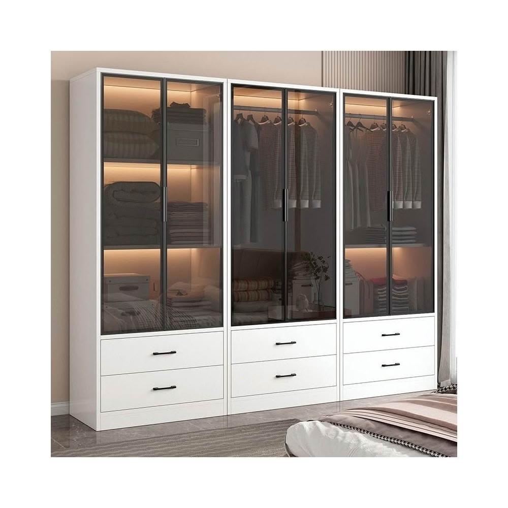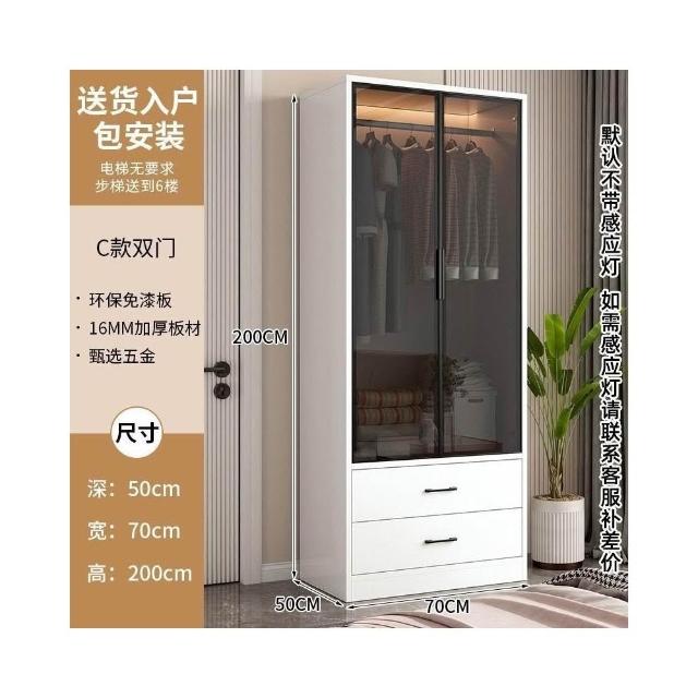 衣櫃家用現代輕奢櫃子玻璃門經濟型出租房臥室小戶型衣櫥