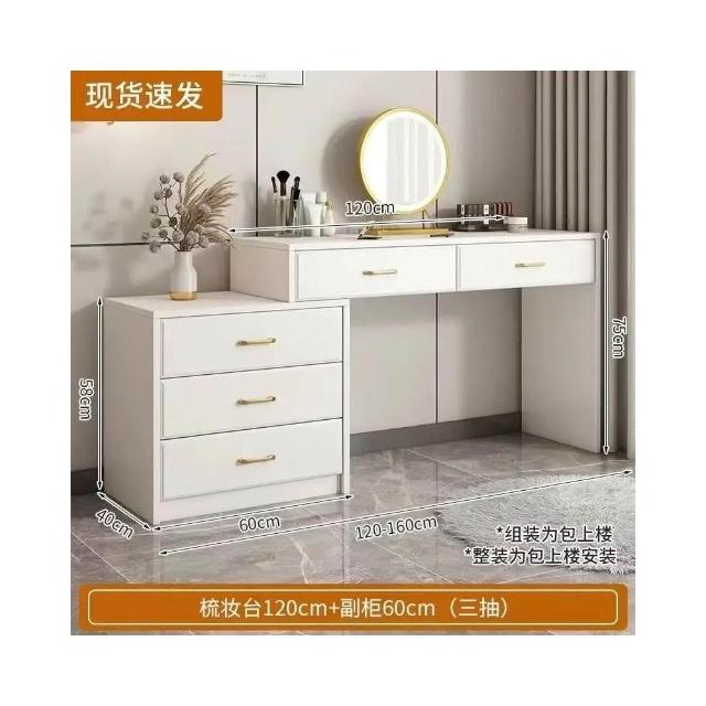 可伸縮 可擺L型 大容量 化妝台 臥室現代 簡約 梳妝臺 多功能 床尾櫃 鬥櫃一體 梳妝櫃 小戶型 化妝桌
